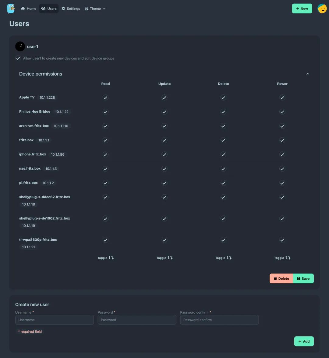 它能让我们直接在浏览器里,给局域网内的设备发送“起床气”,一键远程开机。 这款工具最大的亮点,就是把原本复杂难懂的技术,变成了一个简单直观的网页仪表盘。 只要在服务器或软路由上部署好,我们就能在手机或笔记本上随时访问。 界面非常清爽,所有设备一目了然。 看到哪个设备是灰色的“离线”状态,点一下旁边的电源按钮,它就会立马被唤醒。