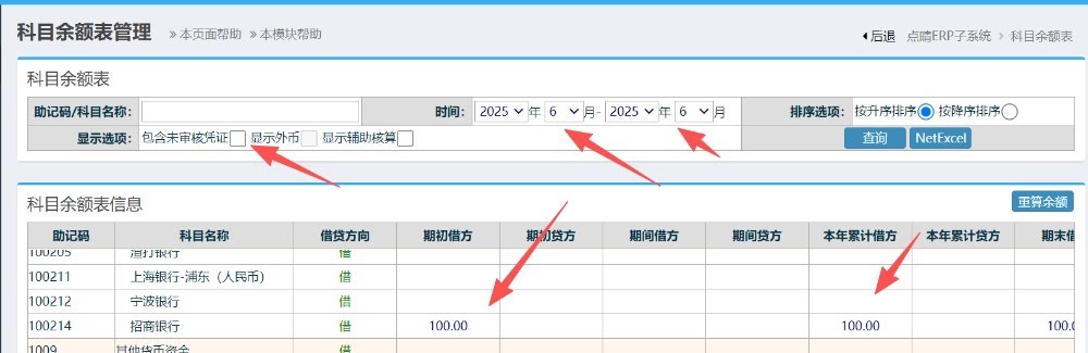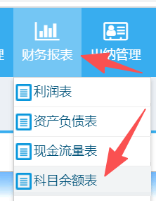 进入菜单-报表查询-科目余额表查询