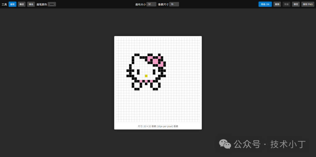 像素画是一种独特的视觉表现形式,以其复古的风格和简洁的设计吸引了众多爱好者。本文将介绍如何使用HTML、CSS和JavaScript创建一个像素画编辑器,支持基本的绘画、撤销/恢复、网格控制等功能。效果演示本编辑器提供了直观易用的操作界面,主要包括工具栏和画布两个区域:工具栏位于顶部,包含画笔、橡皮擦、填充等多种工具选...