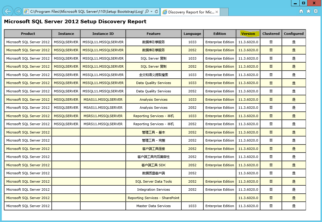 2. 已安装SP包、累计更新CU,历史更新的QFE\ GDR