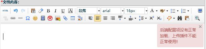 :粘贴图片到富文本编辑器时提示错误:后端配置项没有正常加载,上传插件不能正常使用!如何解决?