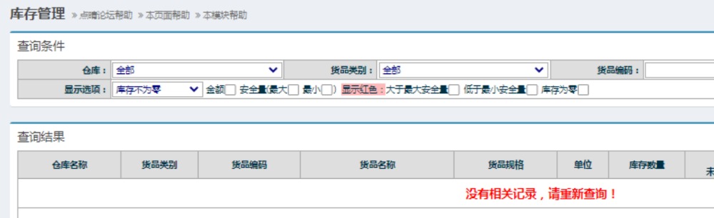 点晴永久免费OA-低耗品管理-库存查询不出来信息