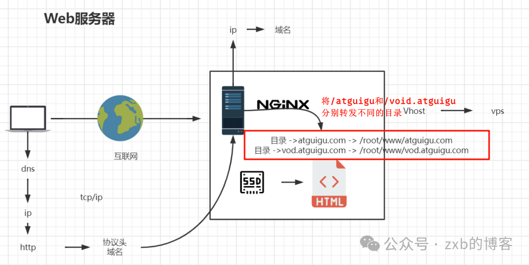 虚拟主机在nginx是一个非常重要的概念,和传统的虚拟机不同,nginx的虚拟主机主要功能是 虚拟化成多个站点同时对外提供服务
