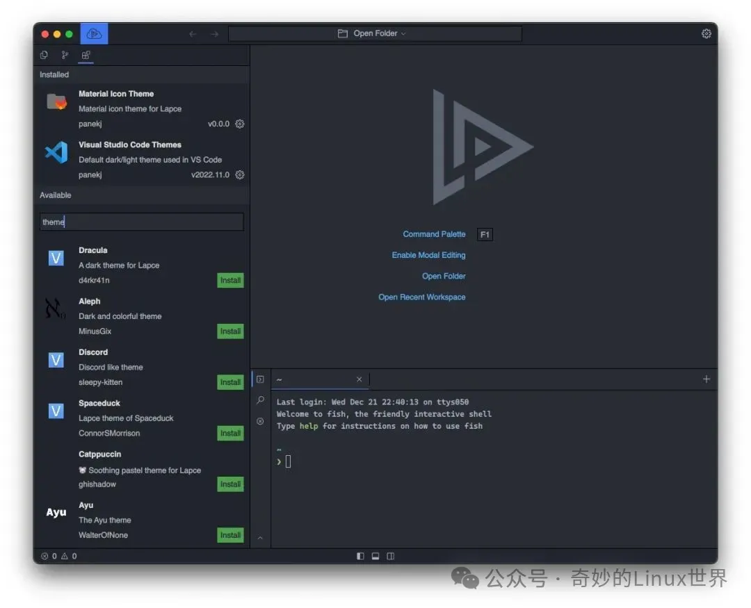 安装完成后,打开 Lapce,你会感受到启动速度的震撼!