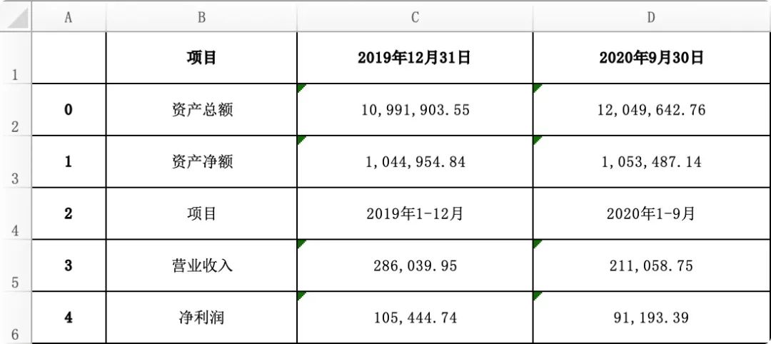 可以看到本页中有两个大的表格,并且细看的话,其实是4个表格,按照简单型表格类型提取方法,得到的效果如下: