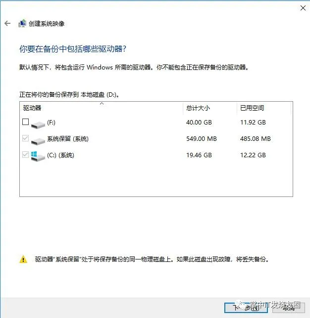 2、选择要备份的分区,默认包含引导分区(默认500MB)和系统分区(默认C盘)