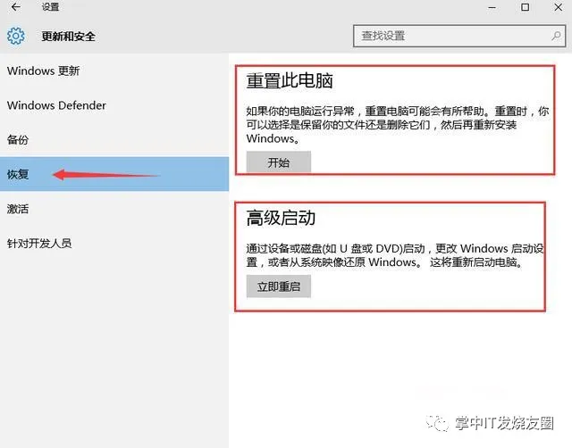 说明:1、重置此电脑:这个是原装出厂的系统才能用这个恢复,原装系统在硬盘有个隐藏分区专门来给系统恢复的,下图中有两个选项,保留我的文件(这个只是恢复系统参数,个人文件相片等都还在)、删除所有内容(这个是恢复出厂设置,东西都不会留下)根据你的情况按照步骤提示跟着操作就可以还原了。高级启动这个正式我们手动一键备份恢复才能用到的。