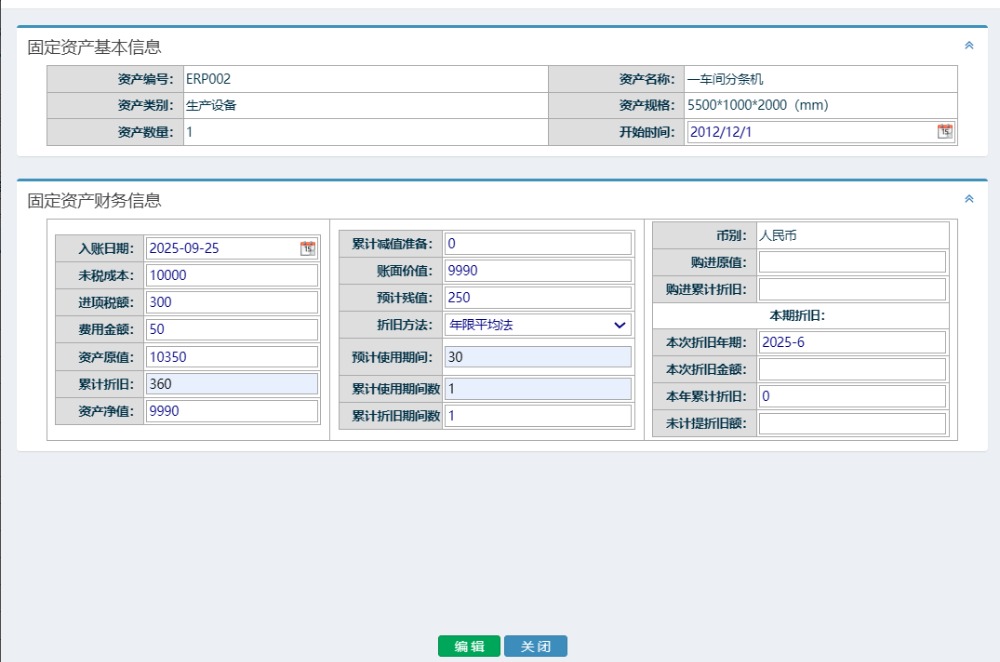 点击财务信息栏下的编辑按钮,编辑对应的资产信息