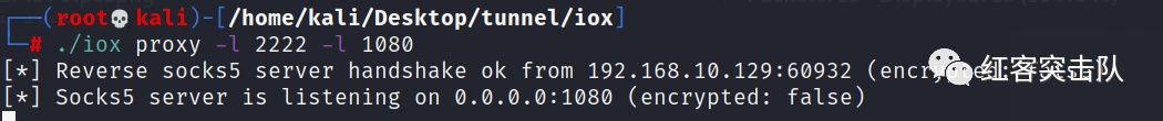 logger.Success("Reverse socks5 server handshake ok from %s (encrypted: %v)", session.RemoteAddr().String(), cenc)  logger.Success("Socks5 server is listening on %s (encrypted: %v)", local, lenc)
