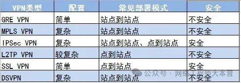 VPN(Virtual Private Network)是指依靠Internet服务提供商ISP(Internet Service Provider)和网络服务提供商NSP(Network Service Provider)在公共网络中建立的虚拟专用通信网络。虚拟(Virtual):VPN是一种虚拟网络,是一种逻辑上的专网。专用(Private):VPN与底层承载网络之间保持资源独立,即VPN资源不被网络中非该VPN的用户所使用;且VPN能够提供足够的安全保证,确保VPN内部信息不受外部侵扰。(1)比如有些公司内网系统,如果暴露在互联网上,就会带来各种安全隐患,可能被黑客攻击、扫描,为了减少互联网的安全风险,很多公司都在大量收缩公网暴露接口。这类系统只能在办公环境访问,但是员工在出差或者在家办公时,也有可能需要访问公司的内网系统,这时VPN就派上了用场,此时一般使用L2TP VPN或者SSL VPN。(2)当一家单位有多处办公地点,办公组网需要把多处办公地点组成成局域网的形式,以满足一些应用系统的需要时,VPN也派上了用场,此时一般使用IPSec VPN。(3)大家都知道在国内访问国外的某些网站时是访问不了的,这时通过VPN技术可以解决这个问题的。当然非常不建议私搭VPN访问国外的网站,但是很多搞技术的同学肯定抱怨前瞻性技术文章在国内的网站信息比较少,通过谷歌搜索学术文章非常迫切。这里成哥教你个办法,进入外企或者国内有海外分支机构的单位,在这些单位都有合法合规的渠道访问国外的网站。VPN的基本原理是利用隧道技术,把VPN报文封装在隧道中,利用VPN骨干网建立专用数据传输通道,实现报文的透明传输。隧道技术使用一种协议封装另外一种协议报文,而封装协议本身也可以被其他封装协议所封装或承载。不管哪种VPN技术都是基于这个通用的原理,下图是最简单的GRE(Generic Routing Encapsulation)VPN的封装格式:(1)廉价:如果一家单位有多个办公地点,此时又需要把多个办公地点搭建成局域网的形式,可以通过拉点到点专线,专线是非常昂贵的一种资源,一般企业是不愿意承担这种费用的,此时VPN技术就可以实现该功能,并且是复用原有的路由器、防火墙设备,利用互联网线路,这可以大大降低组网成本。(2)安全:VPN技术有很多种,其中SSL VPN以及IPSec VPN有数据加密的功能,哪怕没有加密功能的GRE、L2TP等VPN也可以over在IPSec VPN上,以实现数据加密的功能,大大提高了数据传输的安全性。(3)移动接入:员工在外办公,可以随时随地的通过VPN技术接入公司的办公内网,实现内网系统的访问需求。(4)服务质量:部分VPN技术,比如MPLS VPN技术是可以实现服务差分的,即针对特殊流量提供高质量的网络服务能力。下图为常见的VPN类型及其特点,其中部分VPN为不安全,即VPN本身不支持数据加密的功能,此时可以再封装一层IPSec VPN来实现数据的加密。部署模式中站点到站点是指企业的分支机构之间通信使用的VPN模式;点到站点是指客户端(PC或者手机)远程接入的VPN模式。
