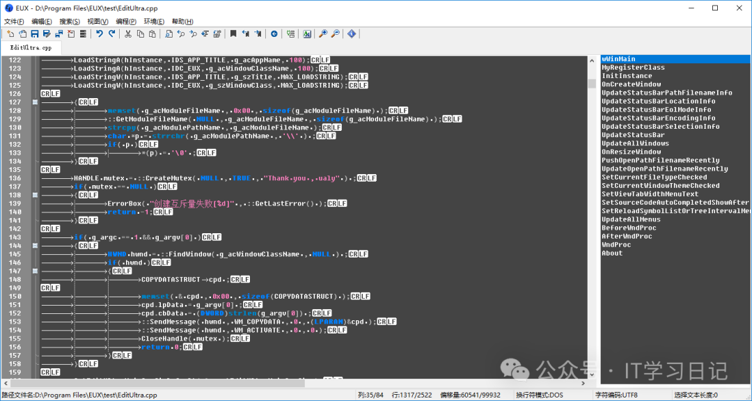 EUX应运而生,它是一款由中国人开发、开源的性能卓越的文本/源码文件编辑器,在开源的富文本编辑控件Scintilla,自研大量功能,覆盖日常生活工作和源代码编写几乎所有场景,同时还内嵌了数据库客户端功能和Redis客户端功能,支持直接提交文本文件里的SQL发给数据库,直接提交Redis命令给Redis服务端执行。比起vscode等软件,EUX整个软件只有10MB,小巧但文本编辑功能齐全,性能卓越,可秒开各类文件。